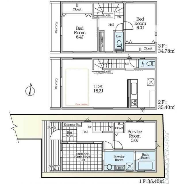 | 間取り(内訳) | 2SLDK(洋6.4/6S5LDK18.2) | 建物面積 | 105.58㎡ |
