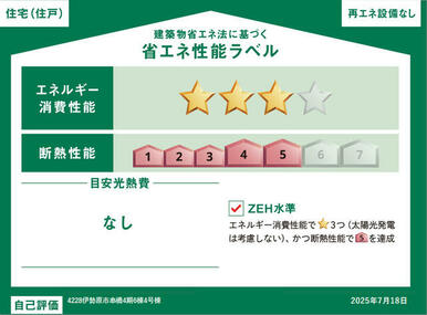 | エネルギー消費性能 | ★★★(削減率20%達成) | 断熱性能 | 5段階/7段階中 |